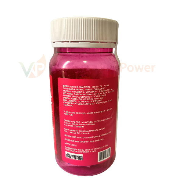 Eleva tu cuidado personal con la forma más deliciosa de nutrir tu cuerpo. Nuestras gomas de la línea Golden Pearls combinan cuatro ingredientes esenciales para fortalecer tu belleza natural, todo en un práctico formato de gomas con un irresistible sabor a fresa.